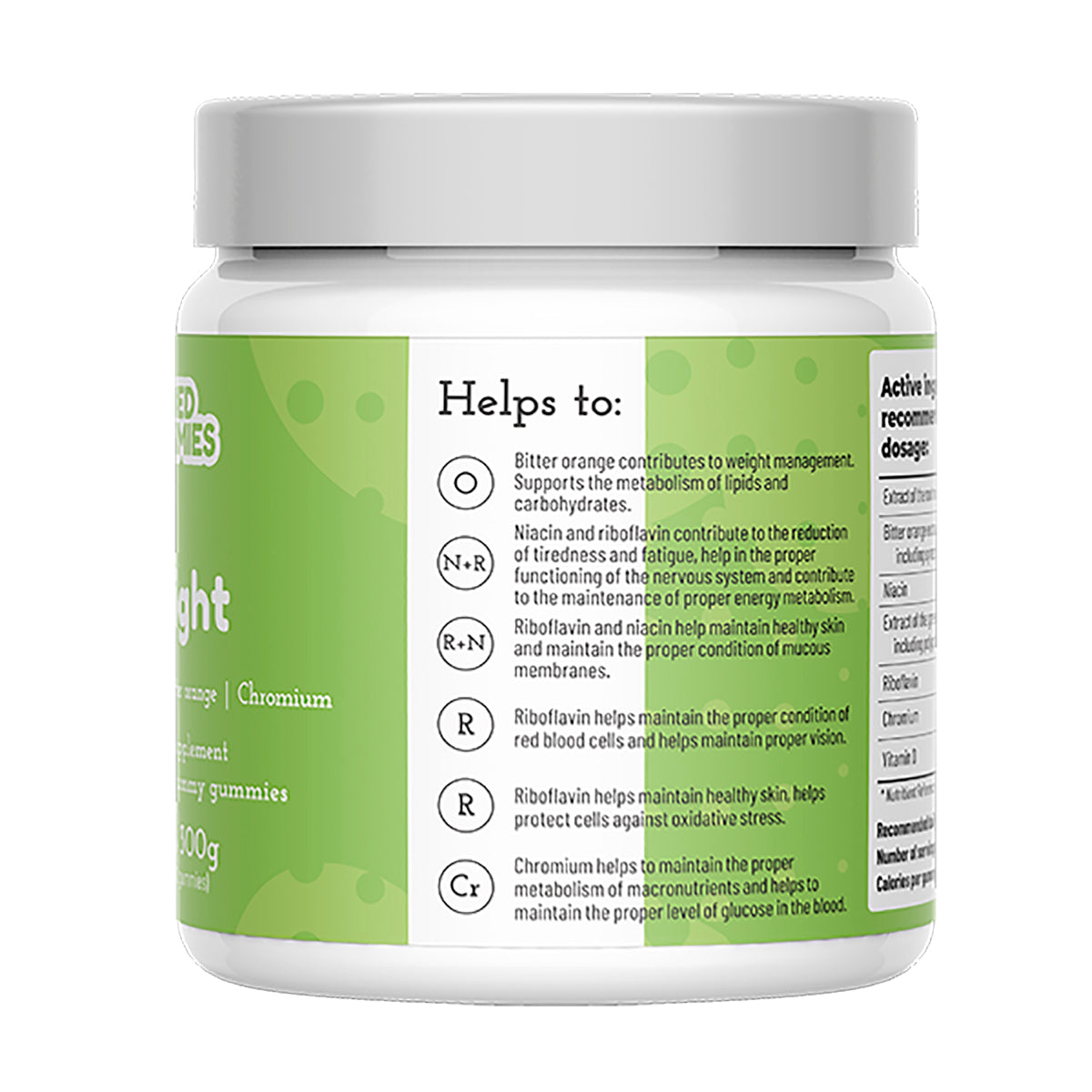 Fit 4 Life Made Gummies Bee Light chewable candy is used to increase energy levels, boost metabolism, reduce fatigue and exhaustion, and help with weight loss, as it contains bitter orange, chromium, vitamin B2, and niacin.